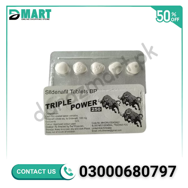 Note: Triple Power 250Mg Tablets Are Available For Purchase Online In Pakistan Via Darazmart.Pk. Get Your Tablets Delivered Quickly To Cities Like Karachi, Lahore, Islamabad, And Other Locations.